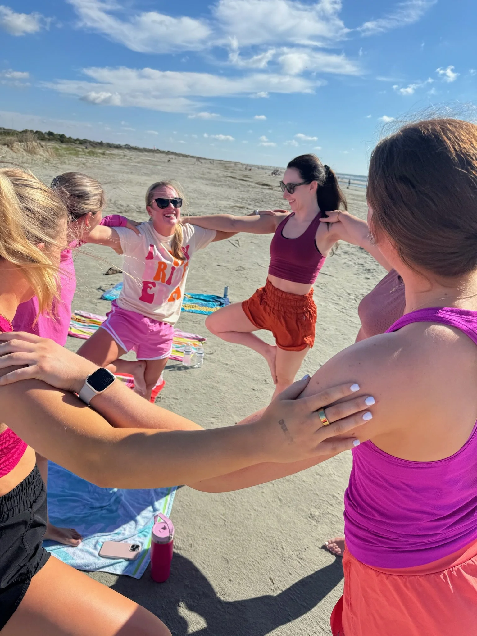 We host private group classes for bachelorette weekends, girls trips, birthdays, weddings, retreats, and any moment worth celebrating. We come to you and create a class that feels effortless and enjoyable, with music your group actually loves and an atmosphere that feels warm and relaxed.