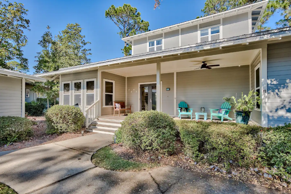 High End: Spacious 3 Bedroom, 3 Bath with Golf Cart- 10 guests can sleep in this sweet little home found in Sandestin. With a sleeping porch, you can enjoy iced tea in the sun or relax by the lapping lake out back.
